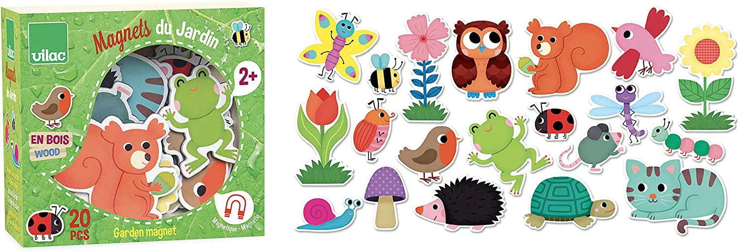 Grâce à ces 20 magnets en bois sur le thème du jardin, les enfants pourront imaginer plein d’histoires. Ces jolis magnets trouveront vite leur place sur le réfrigérateur ou un tableau magnétique !