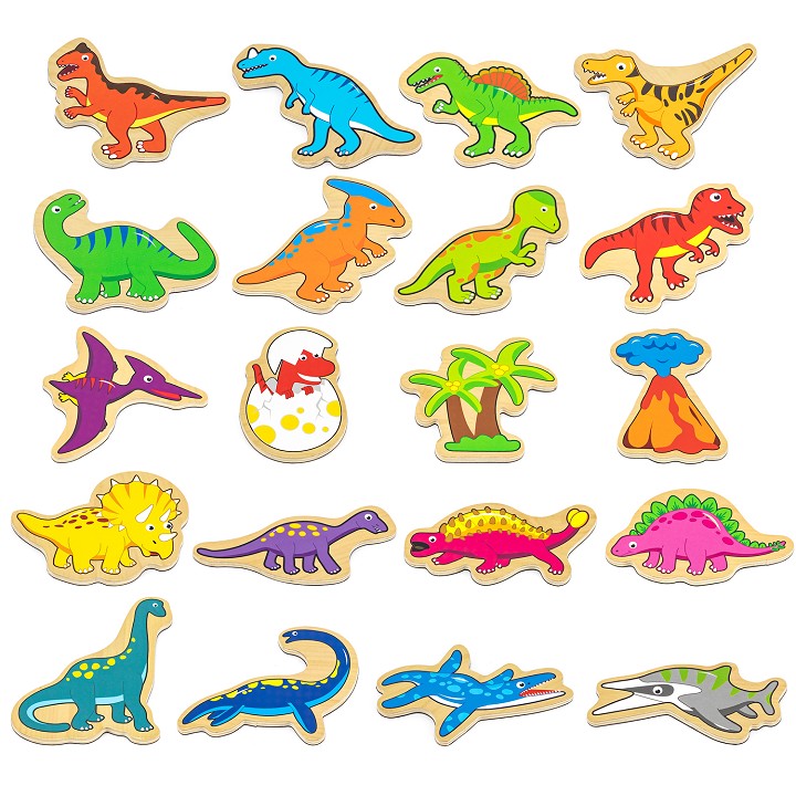 Boite comprenant 20 magnets de dinosaures en bois tous différents