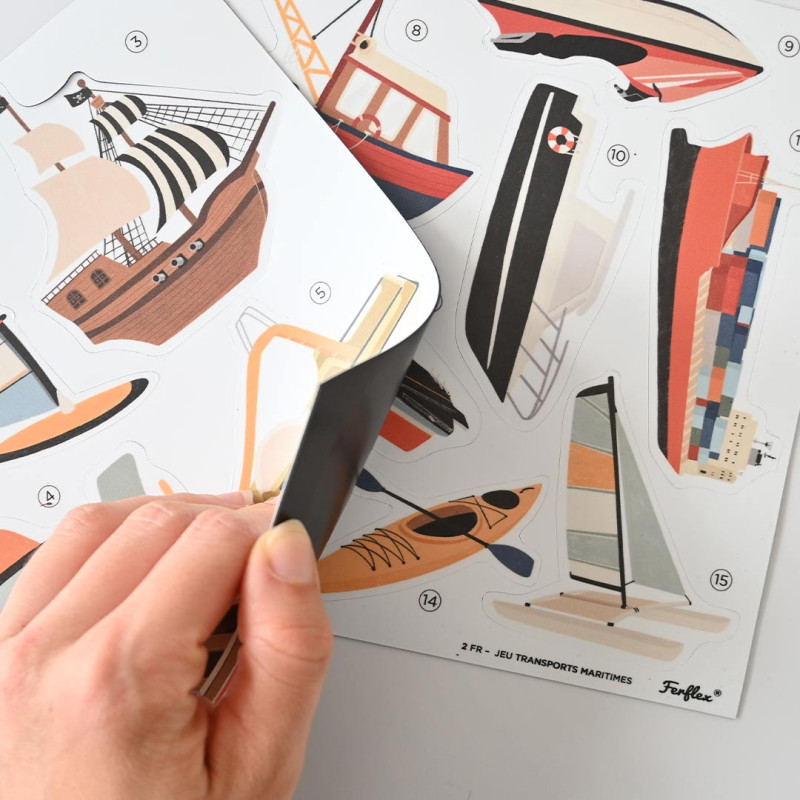 Le jeu de magnets de la marque Ferflex « Les transports maritimes » est idéal pour vos kids. Ce jeu ludique et éducatif permet à tous les passionnés de véhicules de découvrir les différents engins et d’enrichir son vocabulaire tout en développant la créativité et l’imagination.