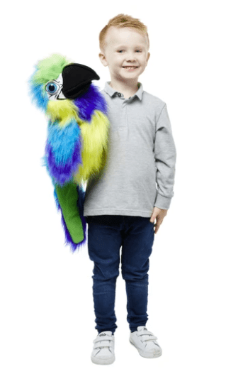- Cette marionnette à main  » Ara bleu et or » est signée The Puppet Company ! Elle a une incroyable expression, un long poil et des finitions magnifiquement imprimées. Le bec qui peut couiner est très bien travaillé.