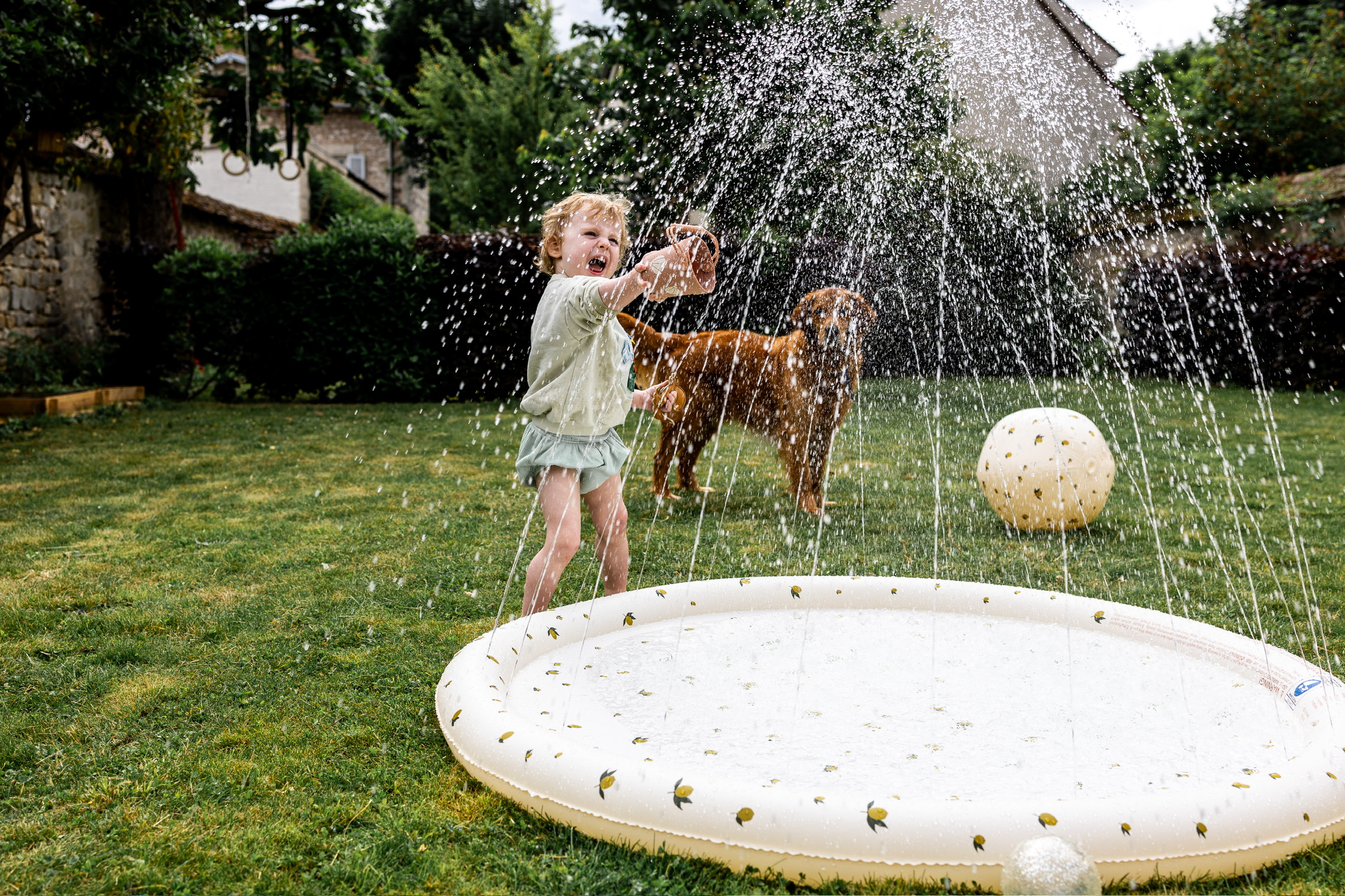 Tapis d’arrosage en PVC imprimé citron de la marque Konges Slojd.