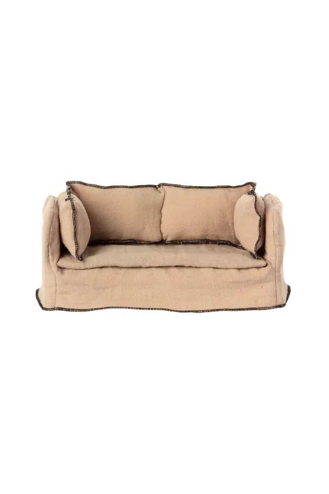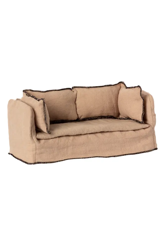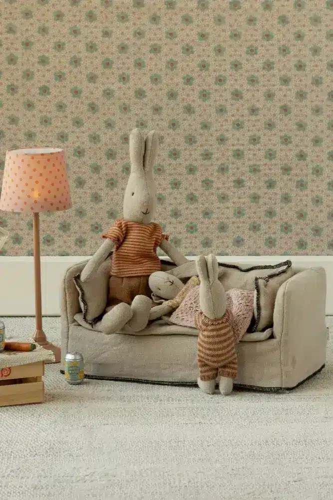 C’est le canapé incontournable ! Ce canapé miniature stylé très tendance a été conçu pour les copains Maileg. On craque pour son look très « Caravane » et son lin naturel bordé de noir ! Comme toujours chez Maileg, les détails sont soignés.