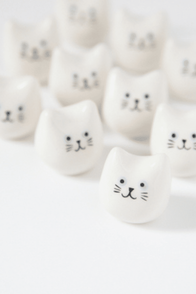 Mini chat, en faïence de chez Dodo Toucan. C’est un petit grigri porte-bonheur. Modelé et peint à la main dans un atelier parisien, chaque mini chat est unique. À la fois familier et mystérieux, le chat est symbole de chance dans de nombreux folklores. Ce compagnon blanc au museau malicieux tient dans la poche ou dans le creux de la main.