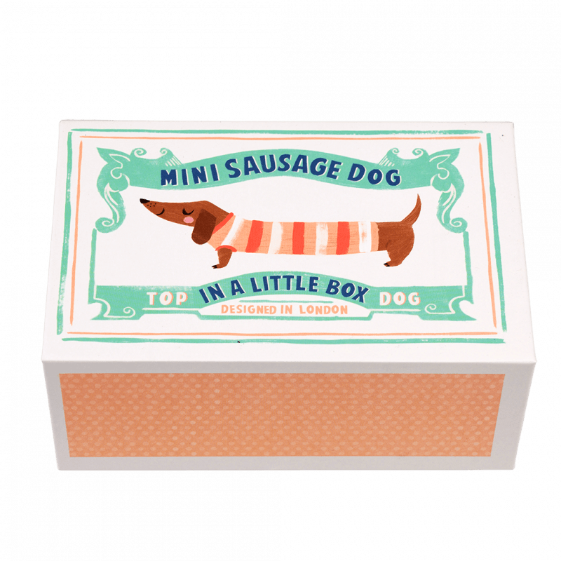 On fond totalement pour ce petit chien saucisse de race teckel habillé en pyjama rayé et niché dans sa petite boite d’alumettes. Un petit nid douillet qui fait office de lit et de niche pour y passer de douces nuits et siestes bien au chaud. Le format original de ce jeu permet d’emmener son petit compagnon partout.