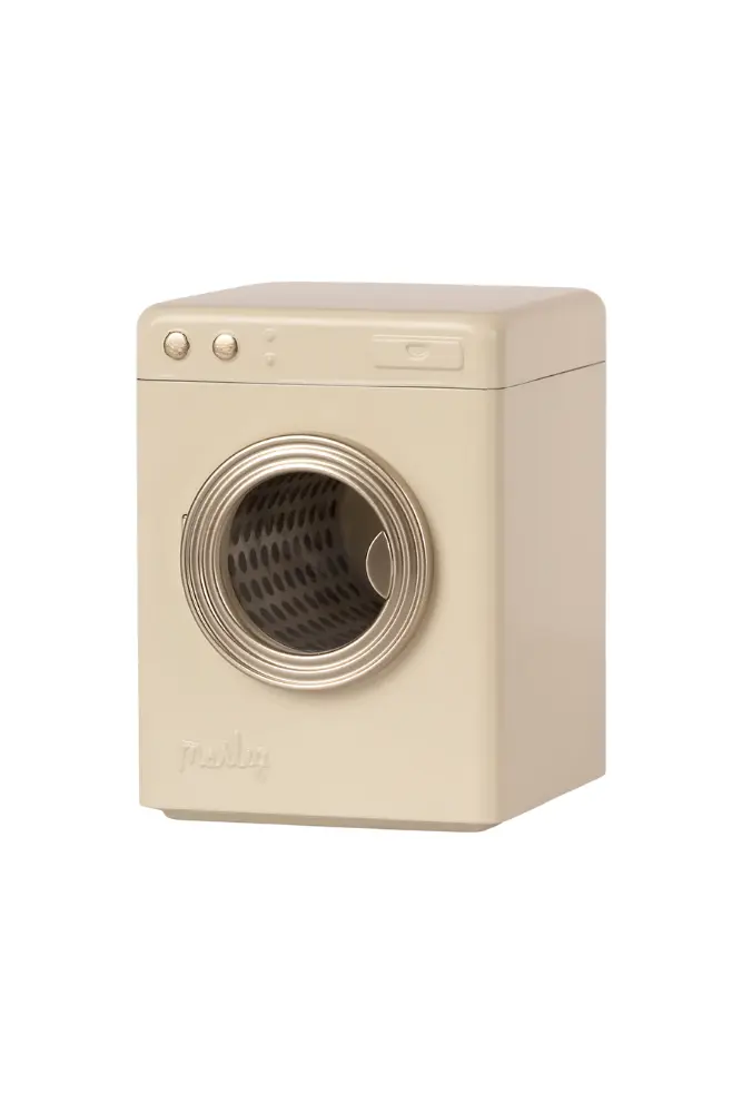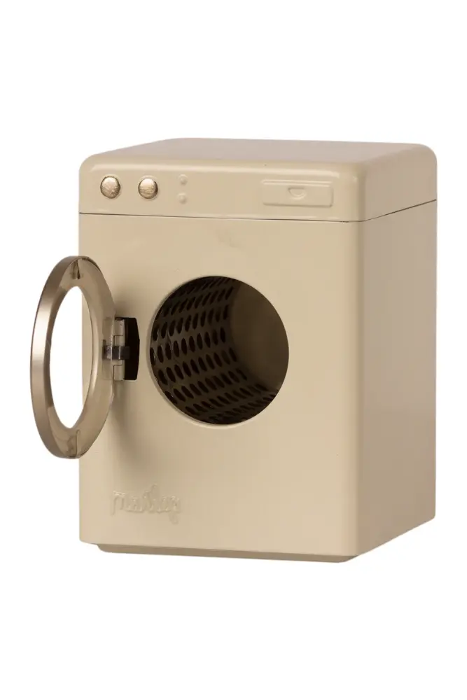 Une jolie machine à laver en métal. Esprit vintage garanti ! La porte du hublot s’ouvre et on peut vraiment y mettre du linge à l’intérieur, tout comme dans une vraie machine. Cette pièce ira à ravir dans les maisons de souris Maileg. A placer dans la buanderie, dans la cuisine ou la salle de bain.