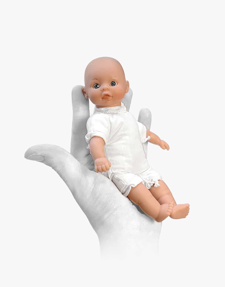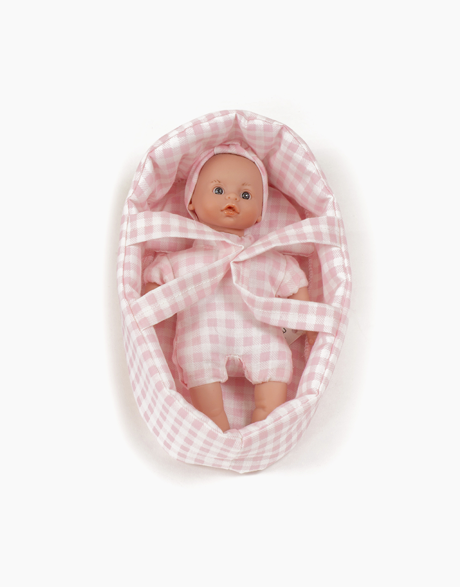 Craquez pour cet adorable mini poupon Téa vendue dans son joli couffin à carreaux.Â