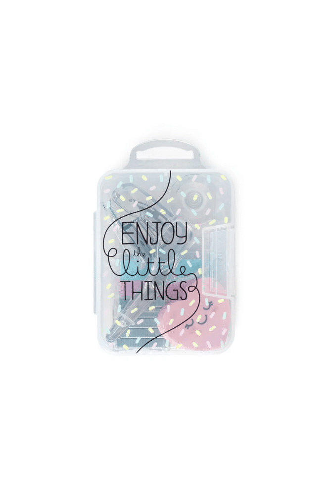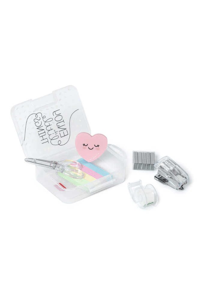 Emportez l’essentiel de la papeterie partout avec le mini set de papeterie Legami. Compact et pratique, il contient tout le nécessaire pour être toujours prêt à l’école, au bureau ou en déplacement. Avec son format mini, il se glisse facilement dans une trousse, un sac ou même une poche. Fidèle à l’esprit fun et tendance de la marque italienne Legami, ce set allie utilité et originalité, parfait pour les enfants, ados et adultes qui aiment avoir leurs fournitures à portée de main.