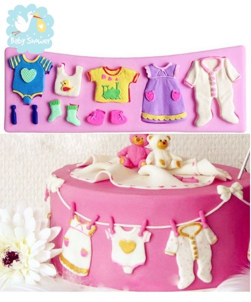 Moule à gateaux en silicone 11 formes: body, bavoir, tee-shirt, robe, pyjama, chaussettes, chaussons, pinces