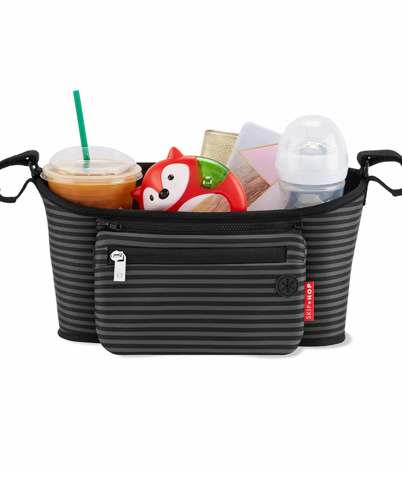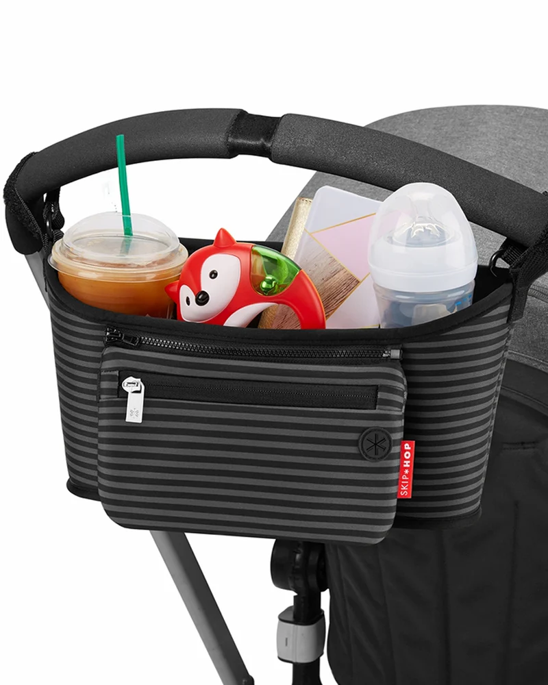 Ce sac isotherme est l’accessoire parfait pour les parents en déplacement. Grâce à son matériau extensible en néoprène, il peut transporter biberons, tasses et essentiels pour bébé tout en gardant les boissons à température idéale grâce aux porte-gobelets isolés. Pratique et adaptable, il se fixe à la majorité des poussettes avec ses sangles réglables et inclut un bracelet zippé détachable pour plus de flexibilité, une poche arrière facile d’accès et un port casque pour les appels en déplacement. Lavable en machine et sans phtalate, il combine style, praticité et sécurité. Dimensions : 40,6 x 7,6 x 15,2 cm. Disponible chez Nuage d’Enfant.