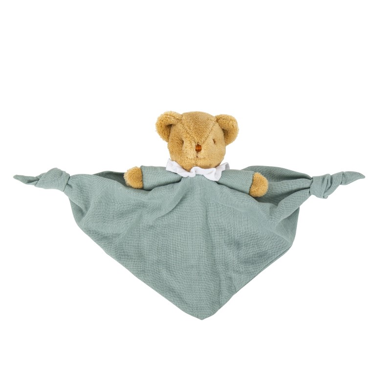 Ours Triangle Doudou avec Hochet 20Cm – Coton Bio Celadon