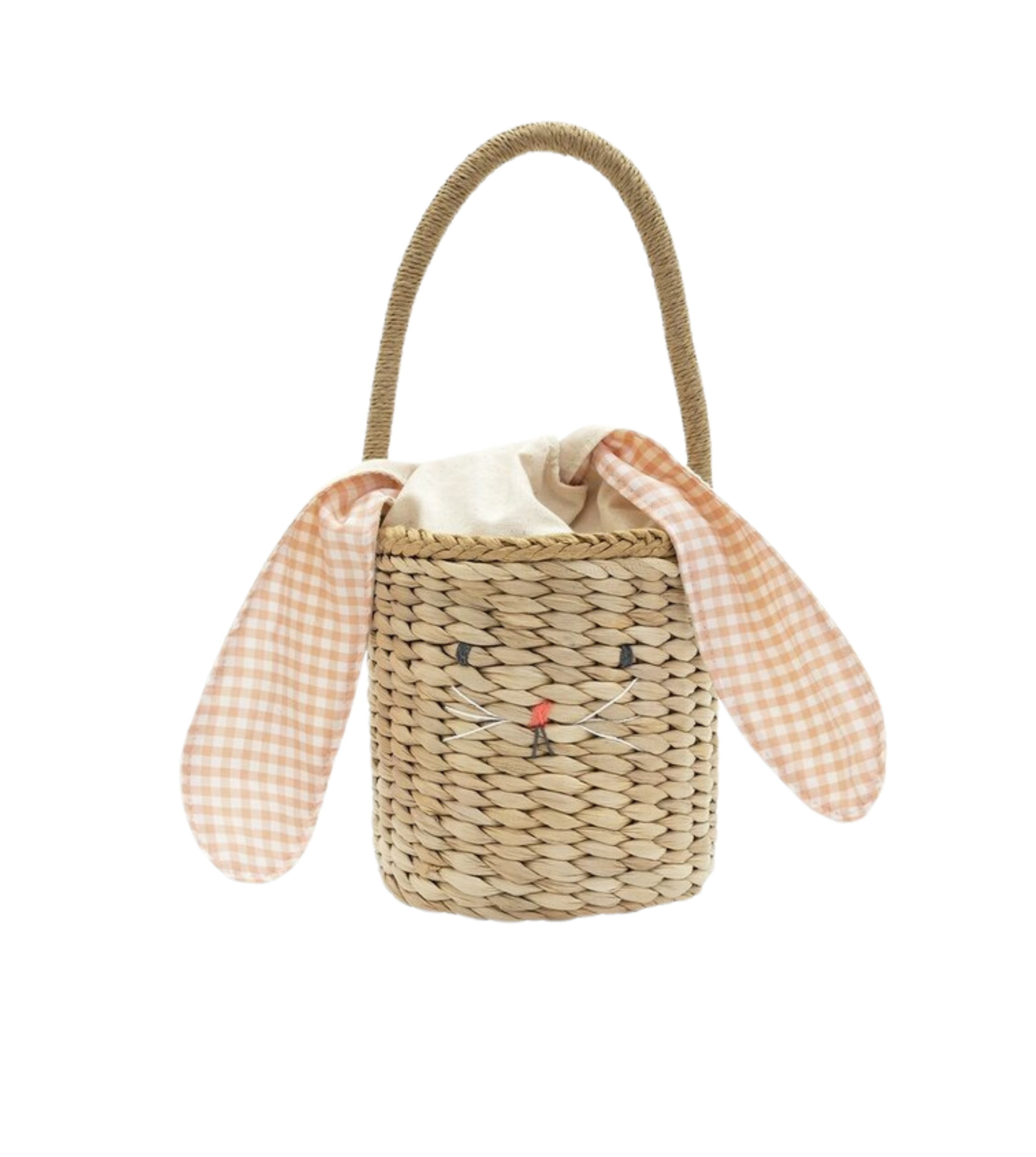 Ce magnifique sac en paille a un joli visage de lapin, une doublure en coton vichy pêche, des oreilles souples amusantes et une jolie queue de pompon. Il est parfait comme panier de Pâques ou pour toute occasion spéciale où un adorable accessoire ajoutera du style.