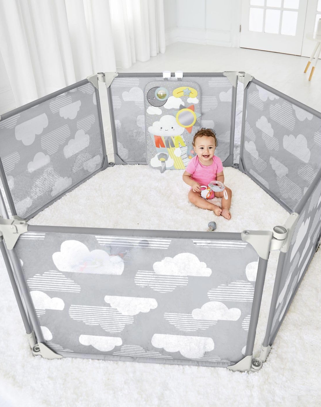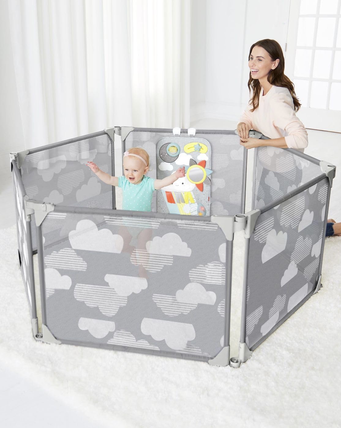 Dès que les tout-petits commencent à explorer leur environnement, les parents cherchent une solution sécurisée et polyvalente pour les protéger tout en leur offrant la liberté de bouger. Le parc extensible Playview de Skip Hop, disponible chez Nuage d’Enfant, répond à ce besoin avec ses six panneaux en maille imprimée de nuages, permettant une visibilité entre l’enfant et le parent tout en garantissant la sécurité de bébé.