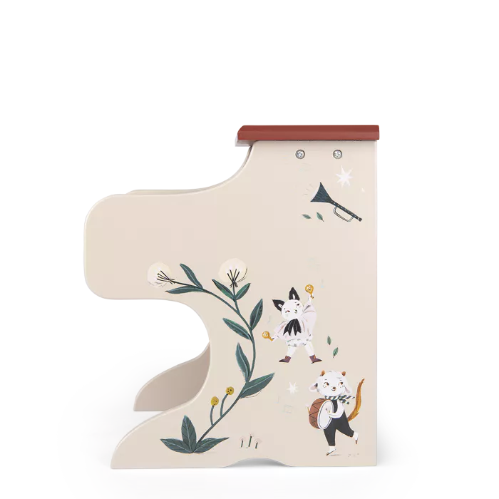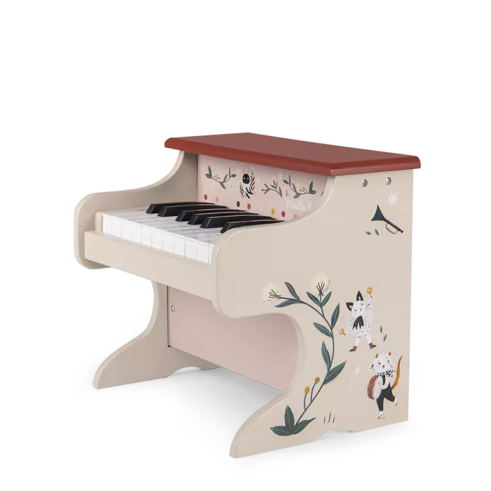 Piano électronique à 18 touches, décoré des illustrations poétiques de la collection Après la pluie. Contient 6 partitions sur lesquelles se trouvent des pastilles colorées pour guider l’enfant. Fonctionne avec piles (non incluses). 3 et +