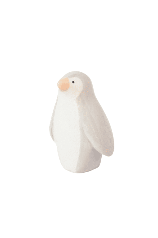 Pingouin, en faïence de chez Dodo Toucan. Modelé et peint à la main dans un atelier parisien, chaque pingouin est unique. Cet animal du froid, vêtu de couleurs douces, aime se promener à petits pas entre les icebergs et les glissades en famille sur la banquise.