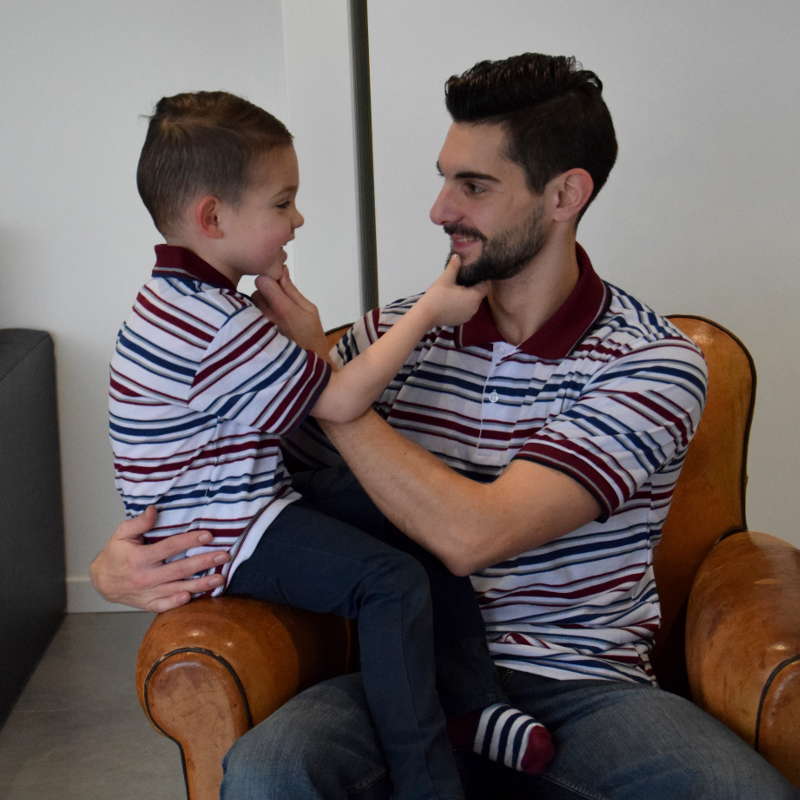 L’élégance de papa avec ce polo. Polo manches courtes avec col deux boutons. Rayures bordeaux et marines. Composition : 65% polyester et 35% coton. Taille petit pour homme ( le L correspond à un M et ainsi de suite).