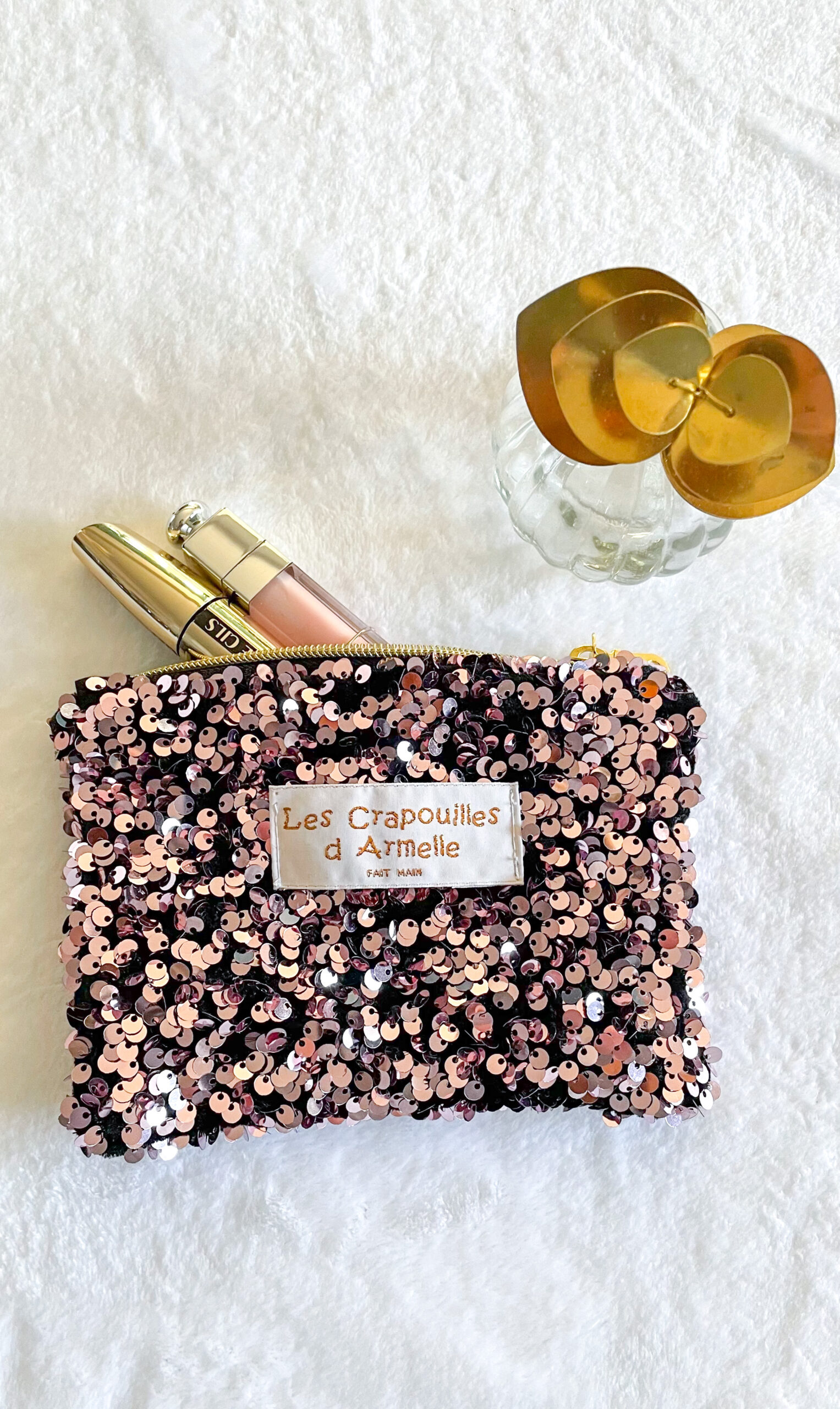 Superbe porte monnaie en sequins rose pour accompagner la banane assortie. Sa taille permet de rentrer vos cartes, clefs, rouge à lèvre et autres accessoires indispensables pour vos sacs. Elle se ferme avec une jolie fermeture éclaire dorée et noire. Dimensions: 16/12 cm. Composition: tissus sequin et tissu 100% coton pour l’intérieur. Entretien: lavage à la main. Délai de confection: 2 à 3 semaine si non en stock.