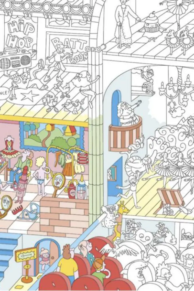 Petits rats de l’opéra, danseurs hip-hop et animaux acrobates se mélangent dans un spectacle incroyable sur ce poster XXL. Votre enfant pourra colorier seul ou le partager, pour passer un bon moment.