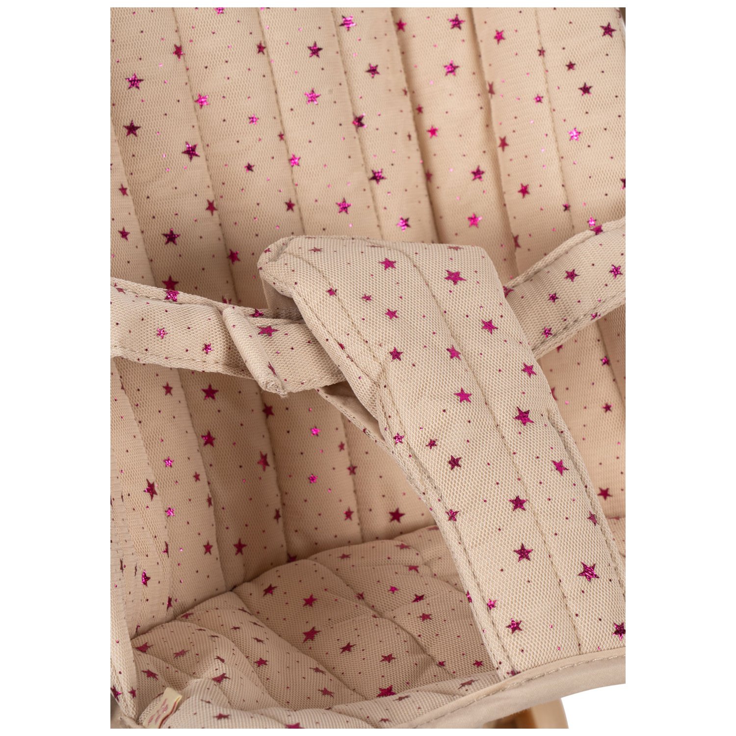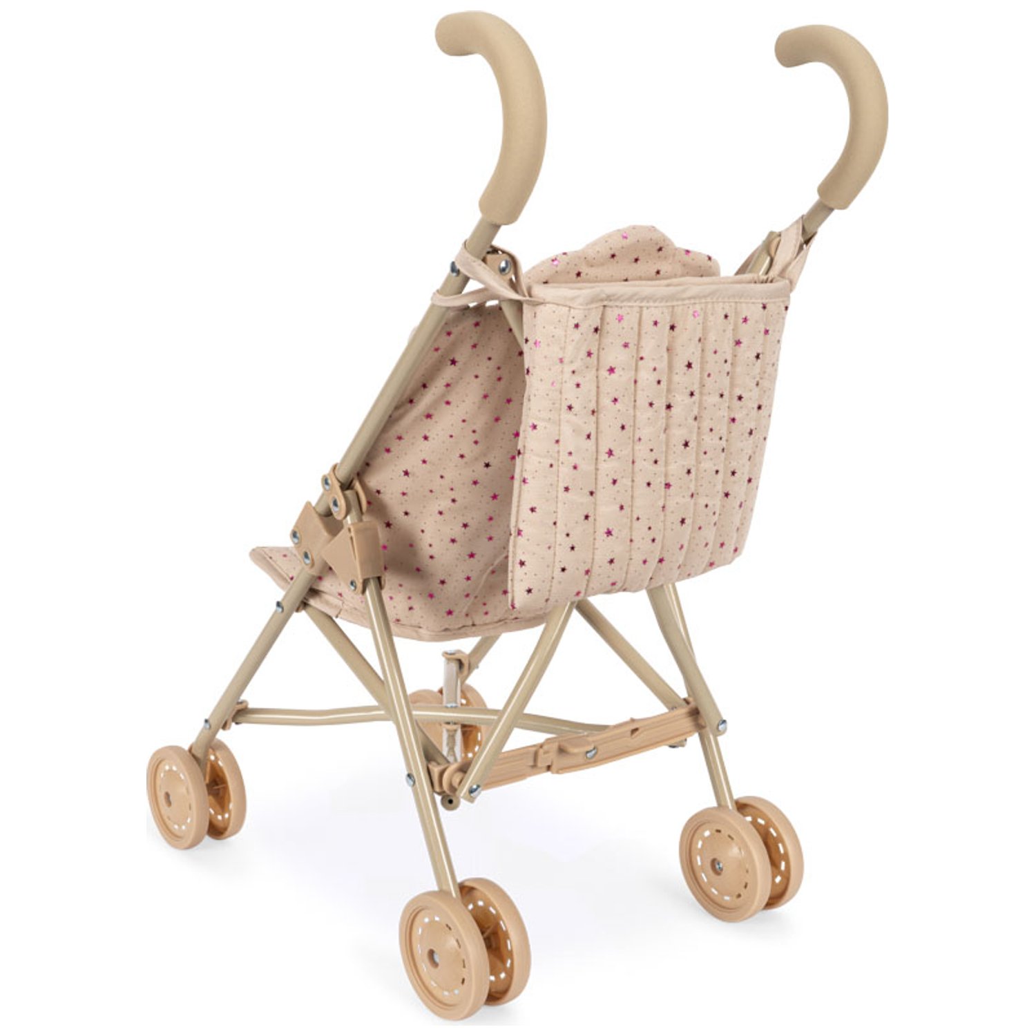 Poussette pour poupée de la marque Konges Slojd équipée d’un harnais, d’un sac de transport et de doubles roues sur les quatre pieds pour plus de stabilité. La housse est amovible. La poussette est livrée entièrement assemblée. Facile à plier et à ranger. La poussette dispose d’un cadre en métal et de poignées douces spongieuses.