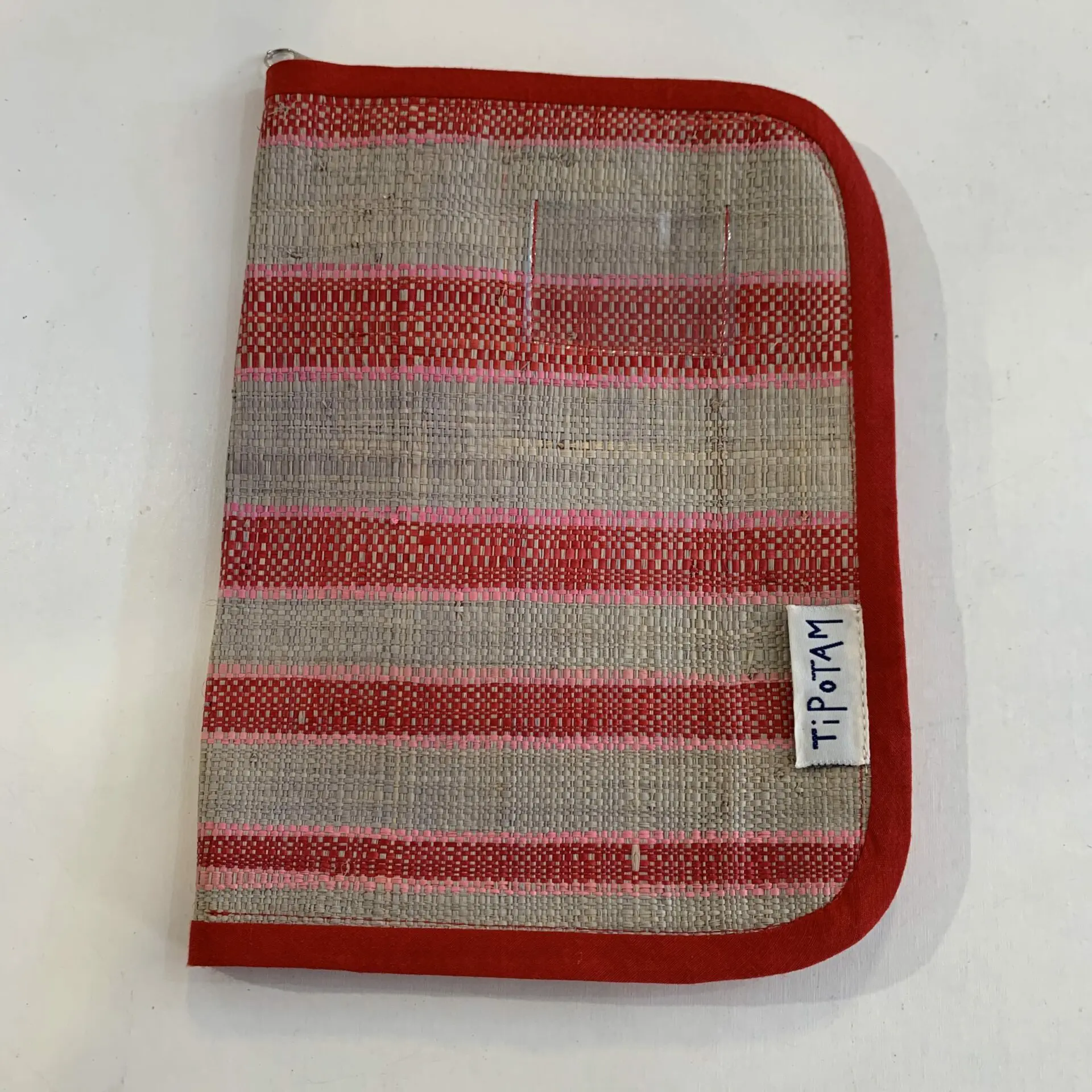 Pochette de protection pour carnet de santé en rabane de Madagascar collection locale, le protège carnet de santé se ferme avec un zip, pratique pour y glisser ordonnance et vaccin.