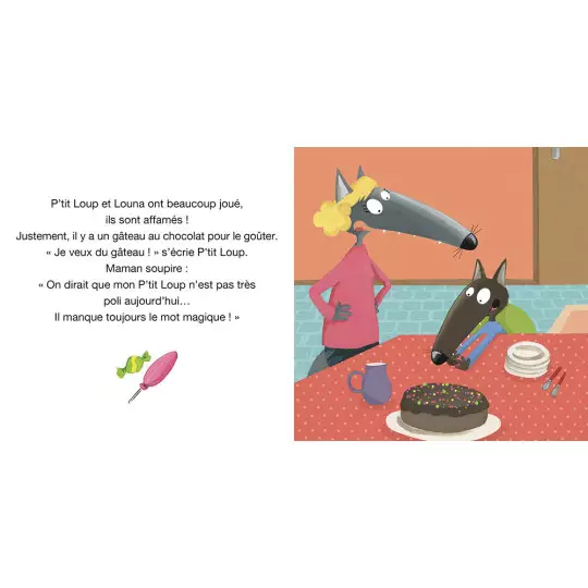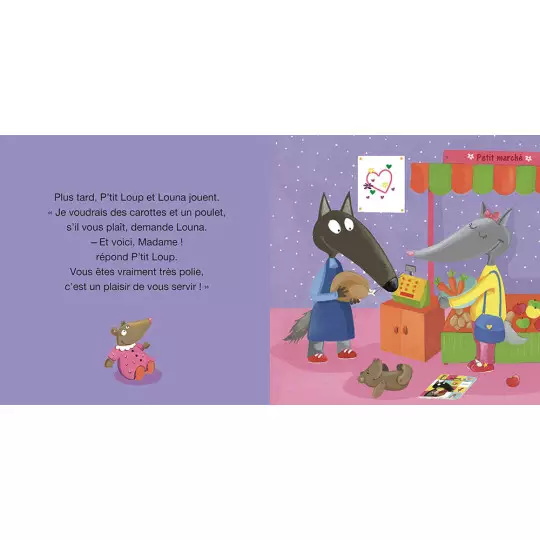 P’tit Loup rend visite à sa cousine Louna. Si les deux louveteaux s’amusent beaucoup, ils en oublient tout, même la politesse… Mais Maman est là pour leur rappeler dans la bonne humeur les mots magiques !