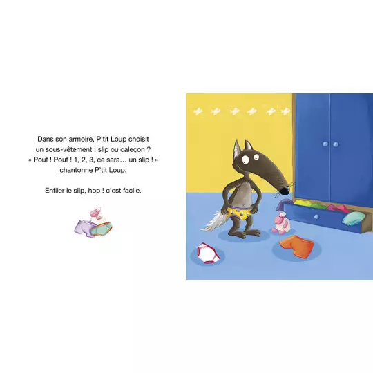 Aujourd’hui, P’tit Loup veut faire une surprise à Maman et Papa : il va s’habiller tout seul, comme un grand ! Les chaussettes, le pantalon, le pull… Il ne faut rien oublier pour être le plus beau !