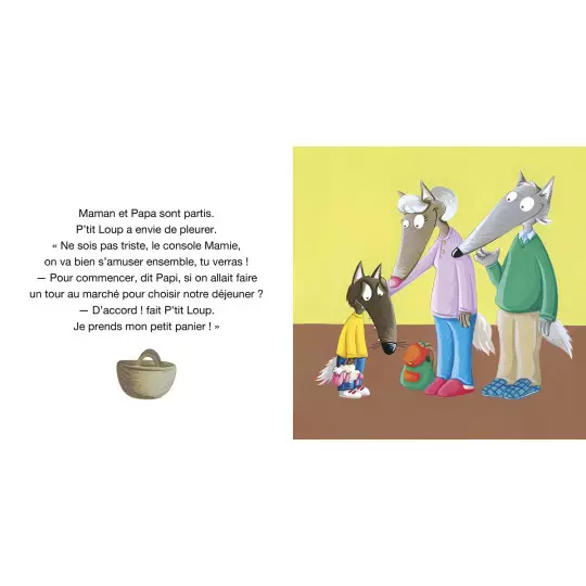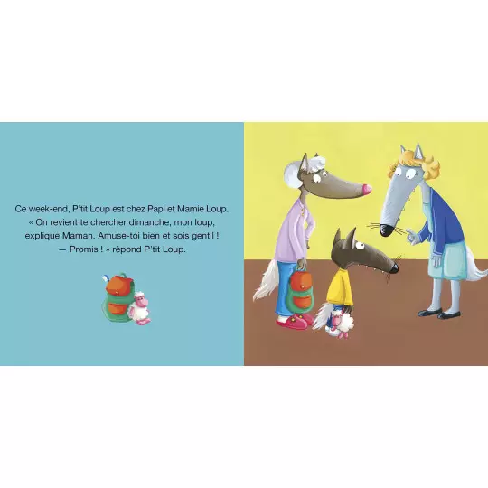 Aujourd’hui, P’tit Loup va chez Papi et Mamie pour le week-end. Il est un peu inquiet. Que va-t-il faire pendant ces deux jours sans Maman, sans Papa ?