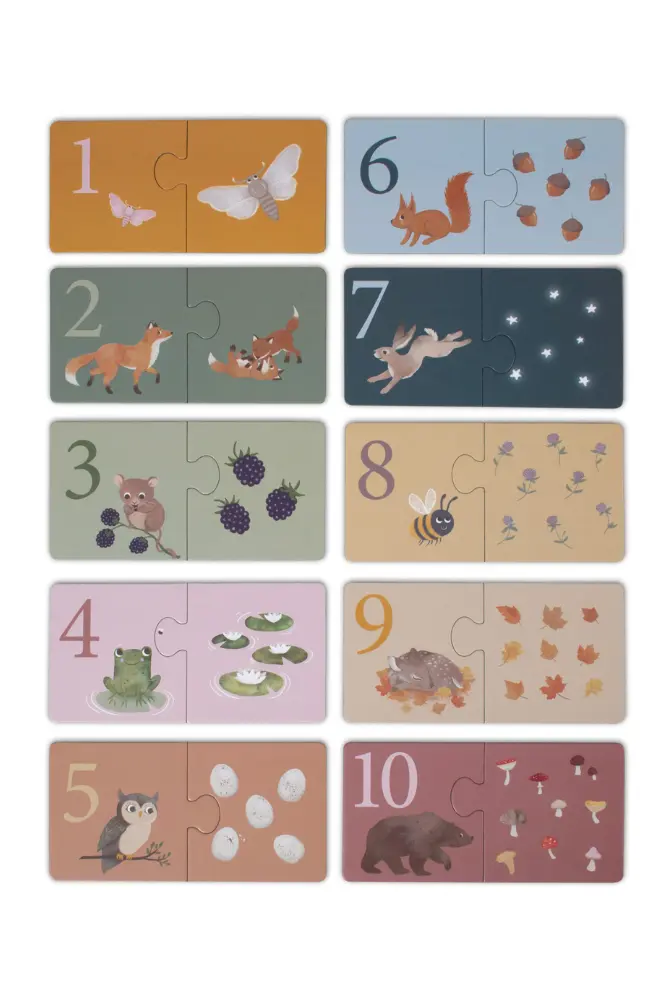Votre enfant pourra apprendre à compter jusqu’à 10 avec l’aide des animaux nordiques. Ce coffret puzzle contient dix jolis puzzles de deux grandes pièces chacun.