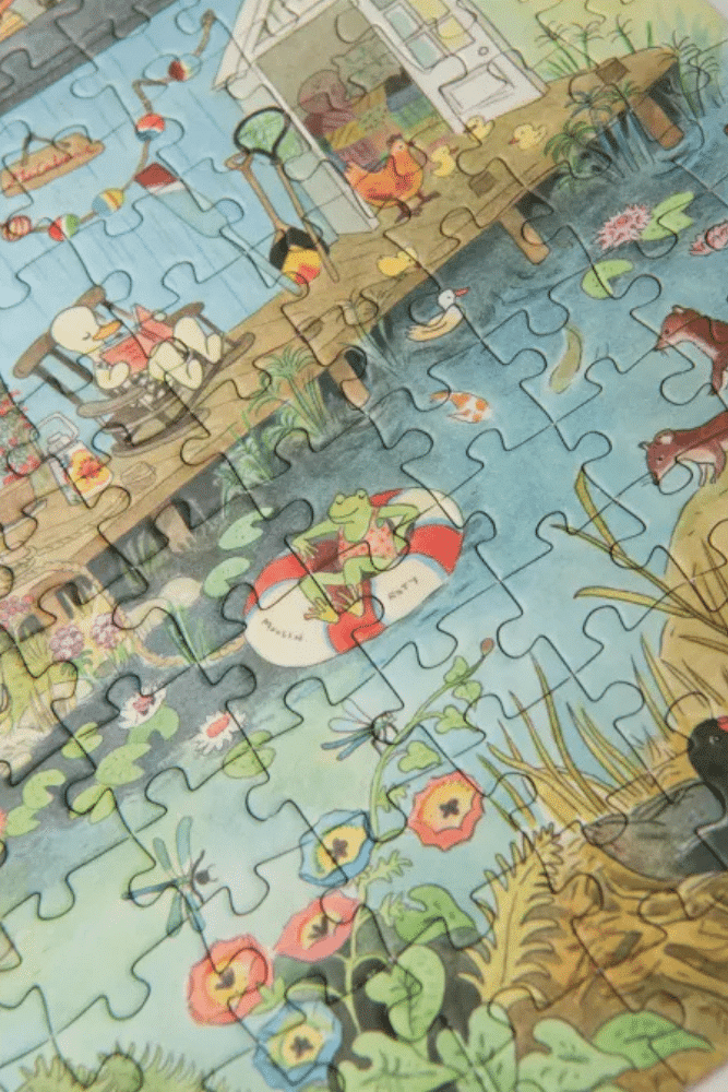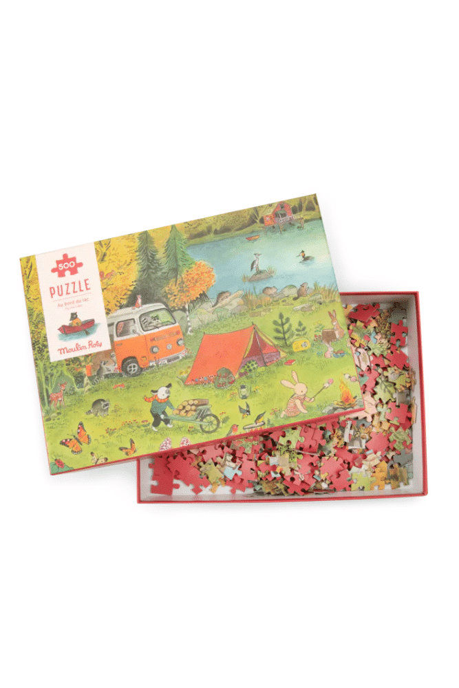 Découvrez le Puzzle « Au bord du lac » ! La grande famille profite de ses vacances, entre marshmallows grillés, balade en barque. Illustré par Camille Jourdy, vous y trouverez des détails stupéfiants.