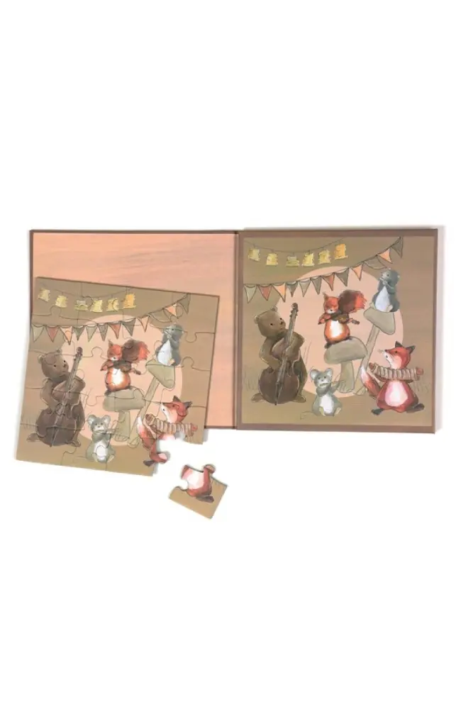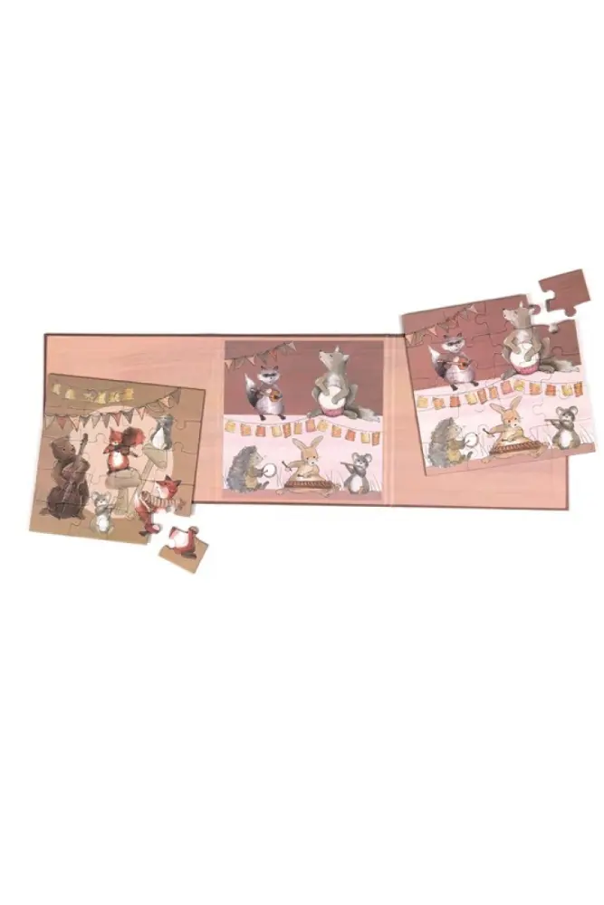 Deux puzzles magnétiques sur le thème des Musiciens. En format livre, il suffit de l’ouvrir et de reproduire le puzzle grâce à l’image. Les pièces sont magnétiques, idéal pour occuper les enfants en voyage, au restaurant, dans la voiture …