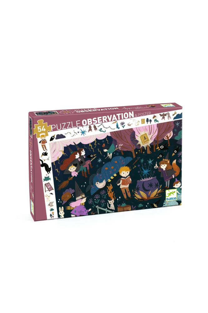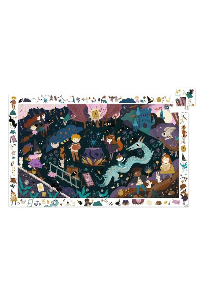 Découvrez le puzzle d’observation Apprentis sorciers de Djeco, un puzzle magnifiquement illustré de 54 pièces sur le thème des sorciers et de la magie pour les enfants. L’enfant crée son puzzle puis s’amuse à retrouver dans l’image les éléments de la frise. De beaux univers à découvrir à travers des illustrations riches en détails et en surprises. Un puzzle à faire et à refaire à volonté.