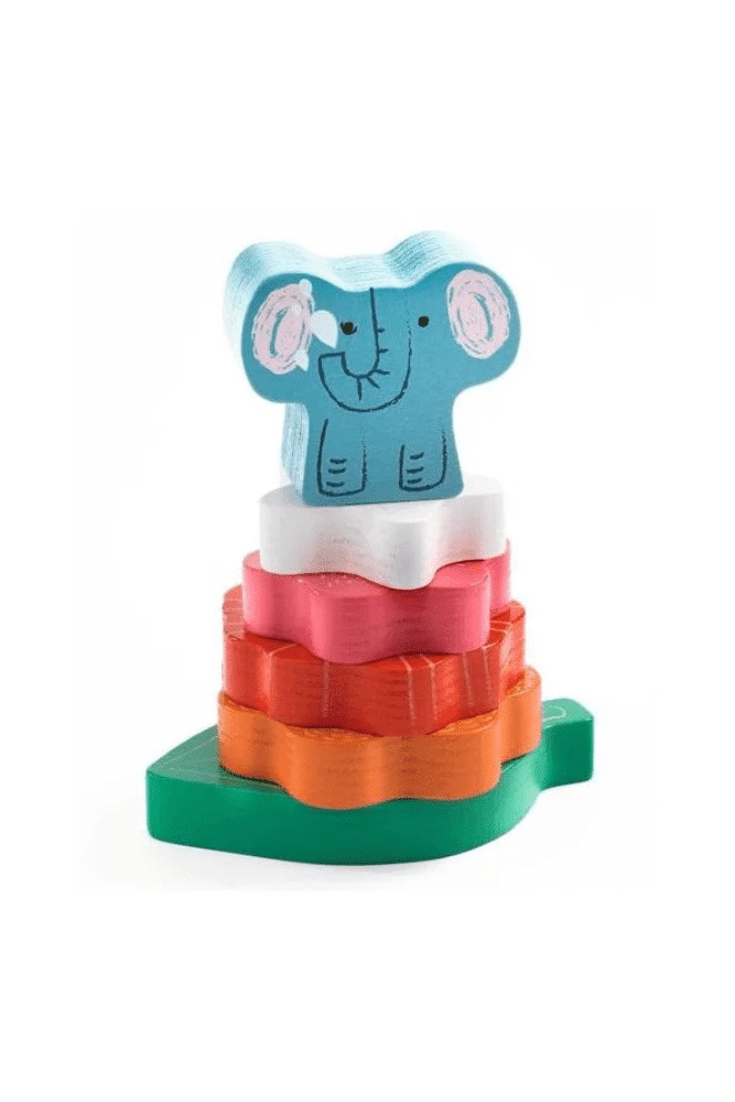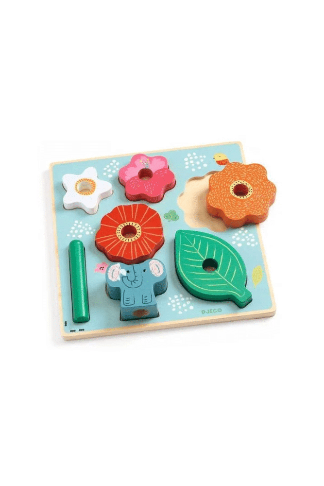 Puzz & Stack est un puzzle en bois facile à construire ainsi qu’un jeu d’empilage pour les enfants dès 18 mois. Les fleurs peuvent être empilées sur l’axe en bois pour former une magnifique pyramide surmontée d’un petit éléphant.