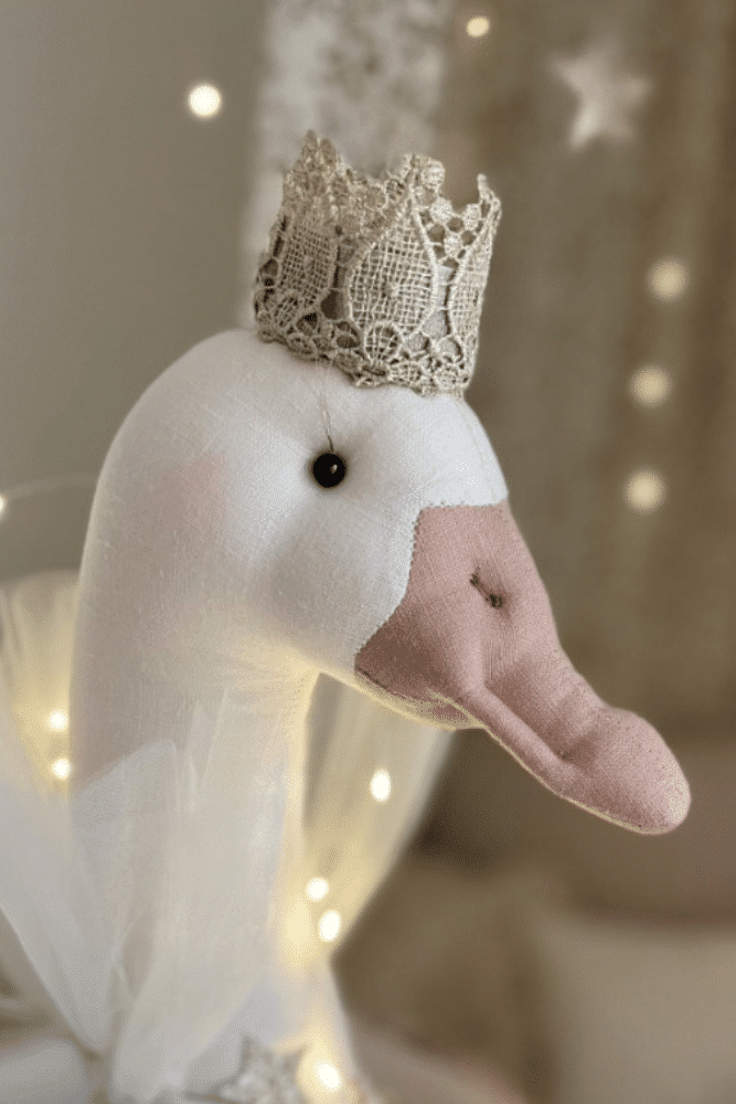 L’oie en lin avec sa couronne donnera un look unique et charmant dans la chambre de votre enfant ! Elle est fabriquée en lin à la main.