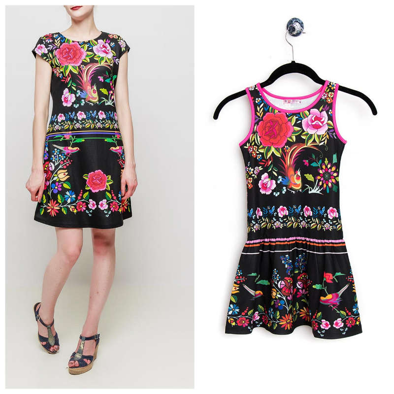 Vous êtes à la recherche d’un look mère fille frais et coloré? Robe femme : imprimée, manches courtes, dos zippé, tissu extensible, Robe enfant : imprimée, A partir de 2 ans. composition : 95% polyester 5% elasthane