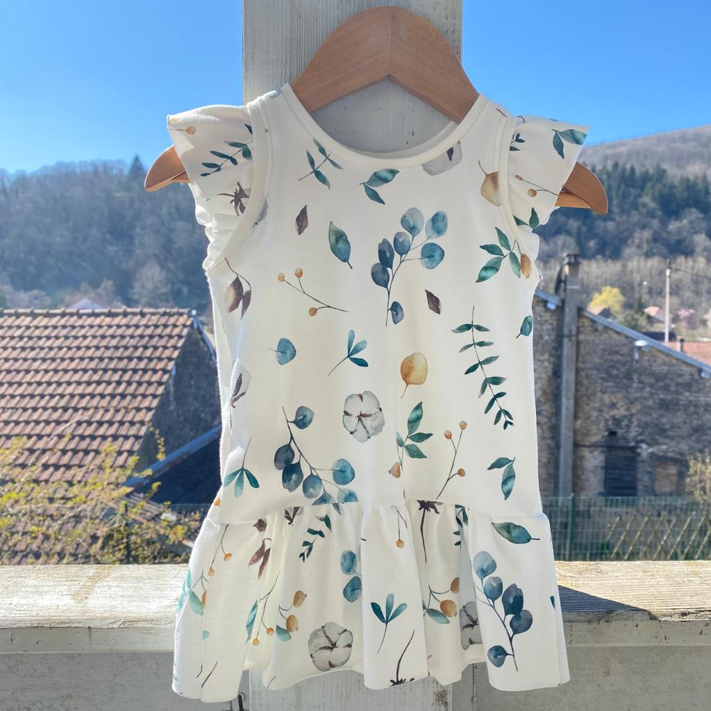 Robe manches courtes à volants bébé/enfant taille froncée en jersey. Robe très confortable sans boutons ni fermeture, elle est très facile à enfiler. Anna porte la robe en taille 9 mois et mesure 70 cm. Cette jolie robe sera parfaite pour les beaux jours du printemps et de l’été. A personnaliser avec le tissu de votre […]
