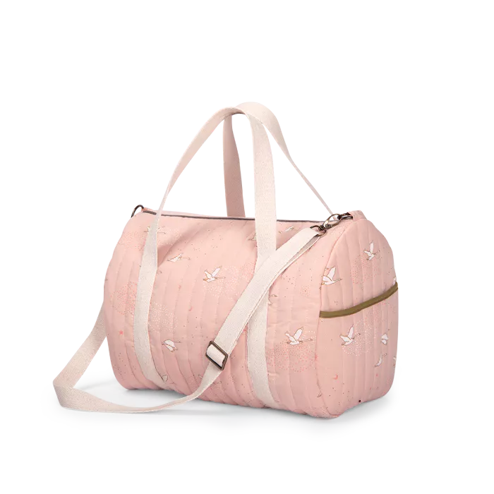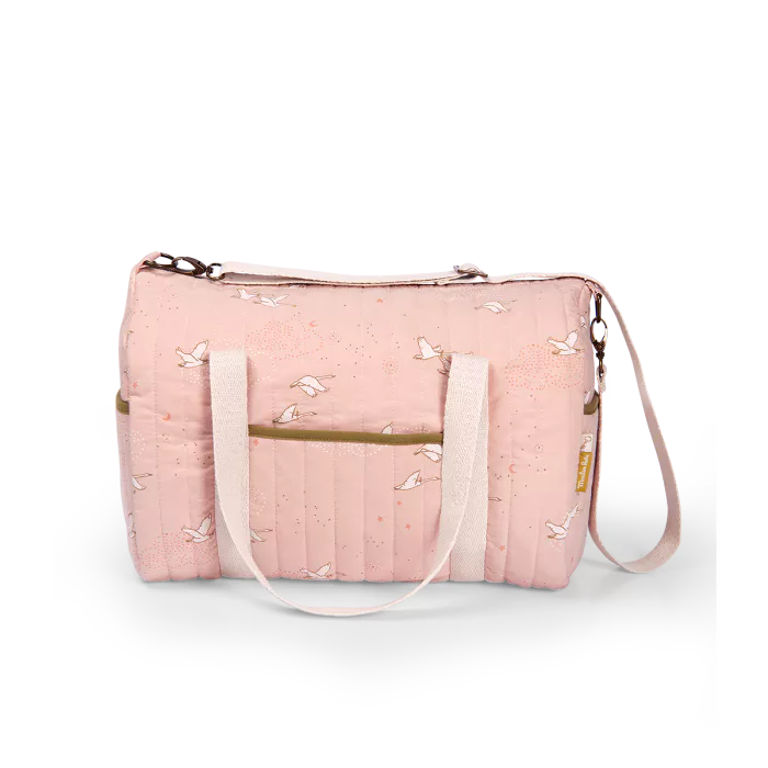 Sac à langer en coton tout doux et déperlant pour ranger le nécessaire de bébé. Fonctionnel et élégant avec son imprimé cygnes, il possède plusieurs poches très pratiques et une bandoulière amovible ! Tissus certifiés OEKO-TEX® (lavage cycle laine). Ce sac à langer peut être brodé au prénom de l’enfant.