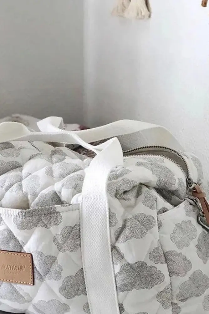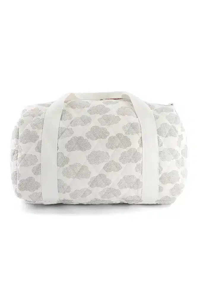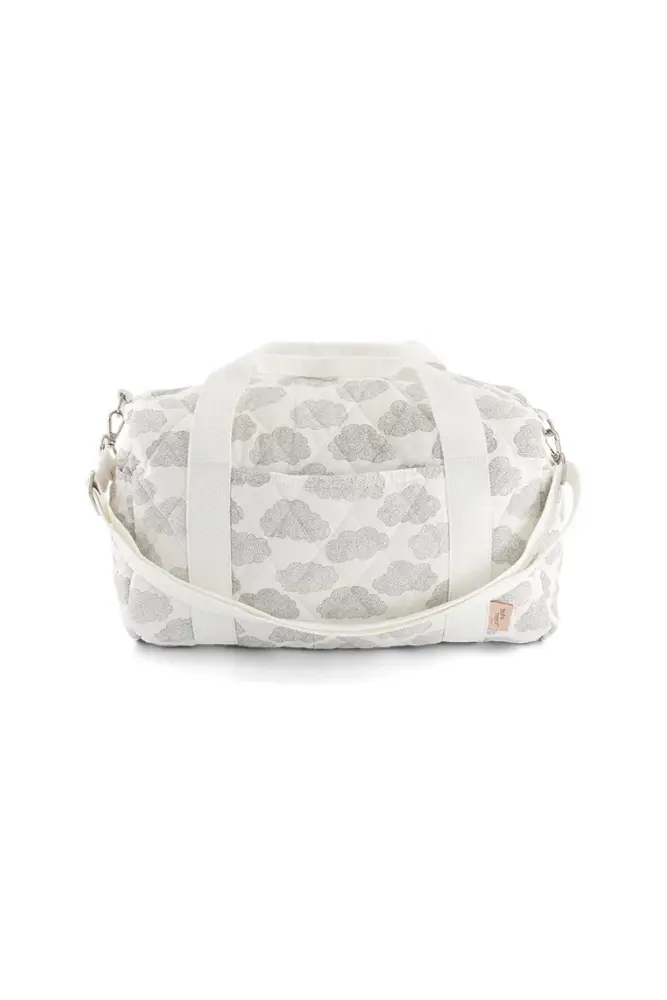 Le sac à langer au motif Nuage avec 5 poches. Compact, il cache bien son jeu et offre un volume généreux. La bandouilière est réglable et adaptable sur poussette ce qu’il lui donne un atout. Vous pourrez le porter à la main ou sur l’épaule.