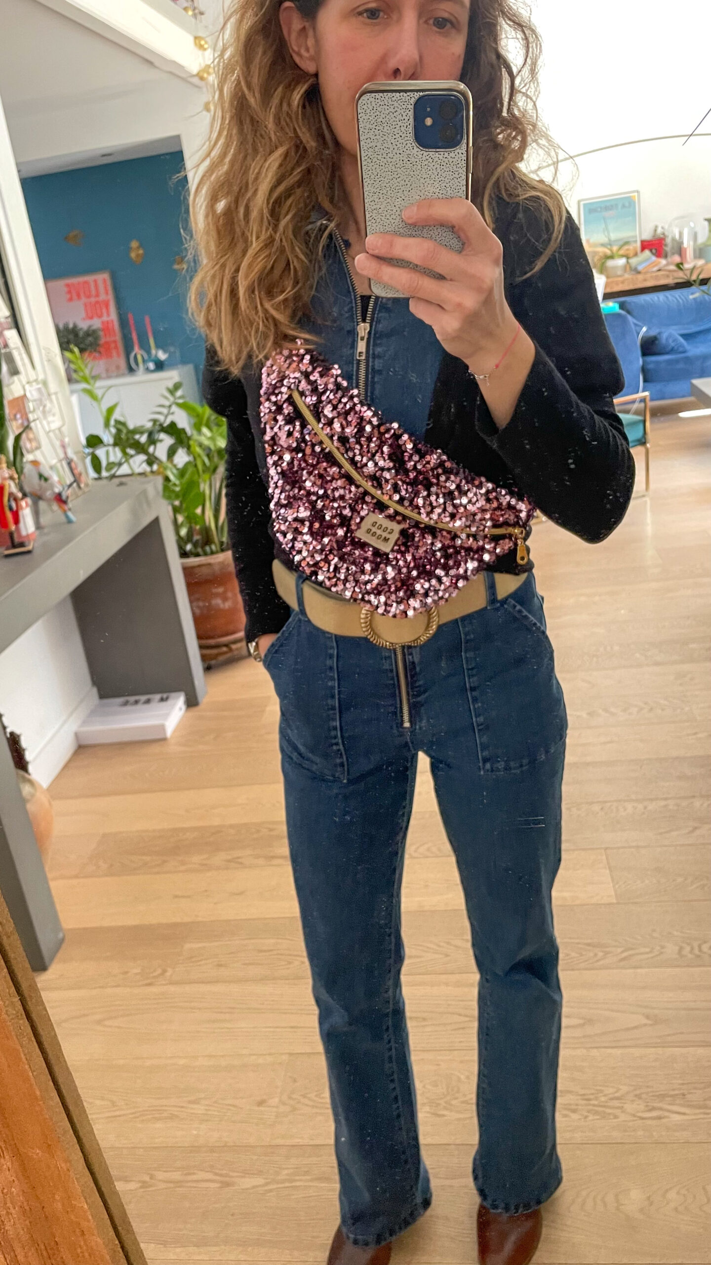 Sac banane à sequins rose pour femme, idéale pour emmener vos indispensables au quotidien. Sangle noire et or . Sa taille est parfaite pour ranger son portefeuilles, telephone, lunettes……. Le cadeau idéale pour vous, une copine, soeur, maman….. Dimensions: – Classique 36/20 cm ( en dehors des attaches). – XL: 40/22 cm – enfant: 26/16 cm Composition: Extérieur en velours et sequins , intérieur coton Oeko-Tex . Attaches et fermeture éclaire dorées. Entretien: lavable en machine à 30°, pas de sèche linge, pas de repassage.