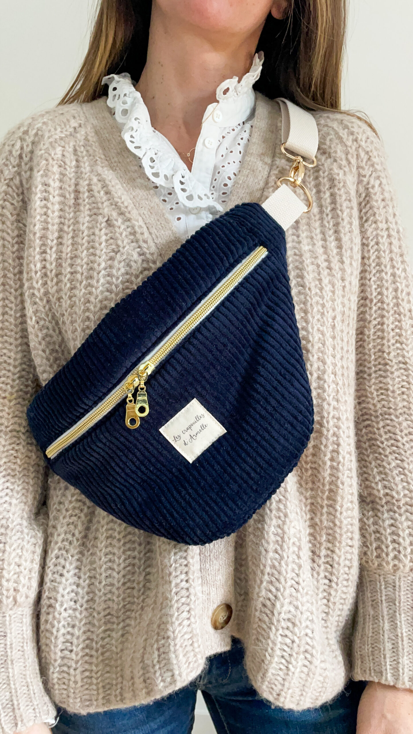Sac banane en velours marine pour femme, idéale pour démarrer l’automne. Merveilleuse doublure fleurie Et grande nouveauté, la sangle est interchangeable et cette option vous est offerte. Double curseur doré, poche intérieur avec fermeture éclaire. Sa taille est parfaite pour ranger son portefeuilles, telephone, lunettes……. Le cadeau idéale pour vous, une copine, soeur, maman….. Dimensions: – Classique 36/20 cm ( en dehors des attaches). – XL: 40/22 cm – enfant: 26/16 cm Composition: Extérieur en velours , intérieur coton Oeko-Tex . Attaches et fermeture éclaire dorées. Entretien: lavable en machine à 30°, pas de sèche linge, repassage doux. Délai de confection:…
