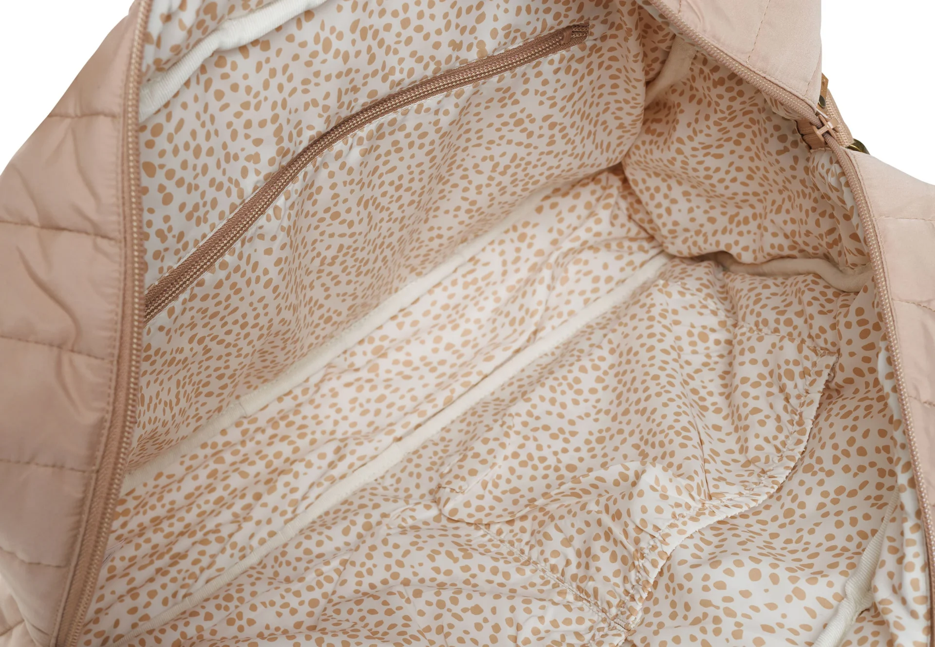 Ce puffy bag, très tendance, est un véritable complément à votre équipement de bébé. Il est en effet très pratique, avec ses poches intérieures et sa poignée réglable qui permet de le porter à l’épaule ou de le suspendre à la poussette. Mais il attire également tous les regards. L’effet bouffant le rend vraiment branché et la doublure intérieure présente un joli motif à pois. C’est tout ce dont vous avez besoin pour un sac à langer !