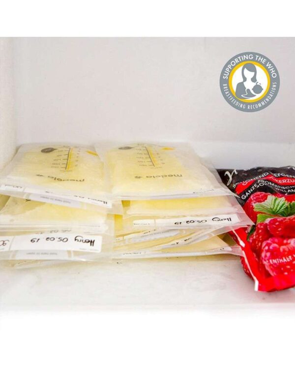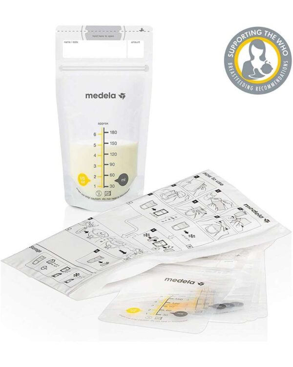 Les sachets de conservation pour lait maternel Medela, prêts à l’emploi, permettent de conserver, de transporter et de réchauffer votre lait maternel de manière simple et hygiénique. Les sachets disposent d’une protection avec leur double glissière, résistante à la congélation, qui assure leur étanchéité. Ils prennent également moins de place que les biberons. Leur forme plate garantit une décongélation rapide et leur matériau durable résiste à la congélation.