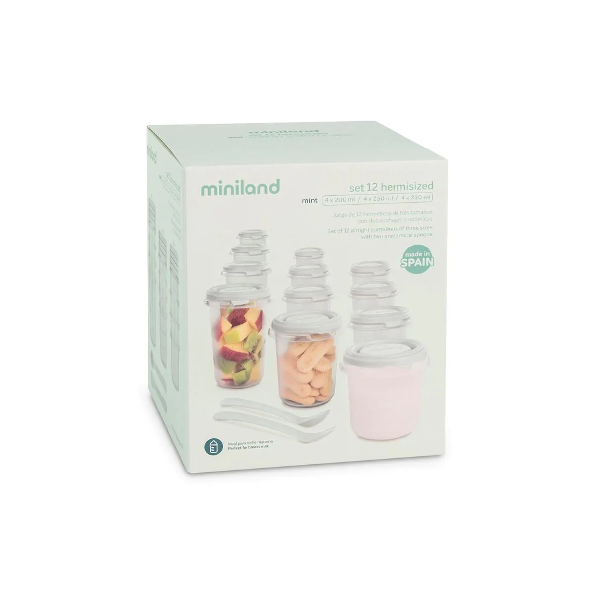 Ensemble combinéde contenants hermétiques de différentes tailles, vous permettant de congeler ou de conserver les repas de votre bébéselon vos besoins. Avec une échelle de mesure, vous saurez toujours quelle quantitévous stockez, et il comprend trois tailles différentes (200 ml, 250 ml et 330 ml) que vous pouvez utiliser comme bon vous semble. Ce pack de 12 contenants hermétiques comprend également deux cuillères anatomiques pour bébé, vous permettant de nourrir votre bébédirectement depuis le contenant oùque vous soyez.