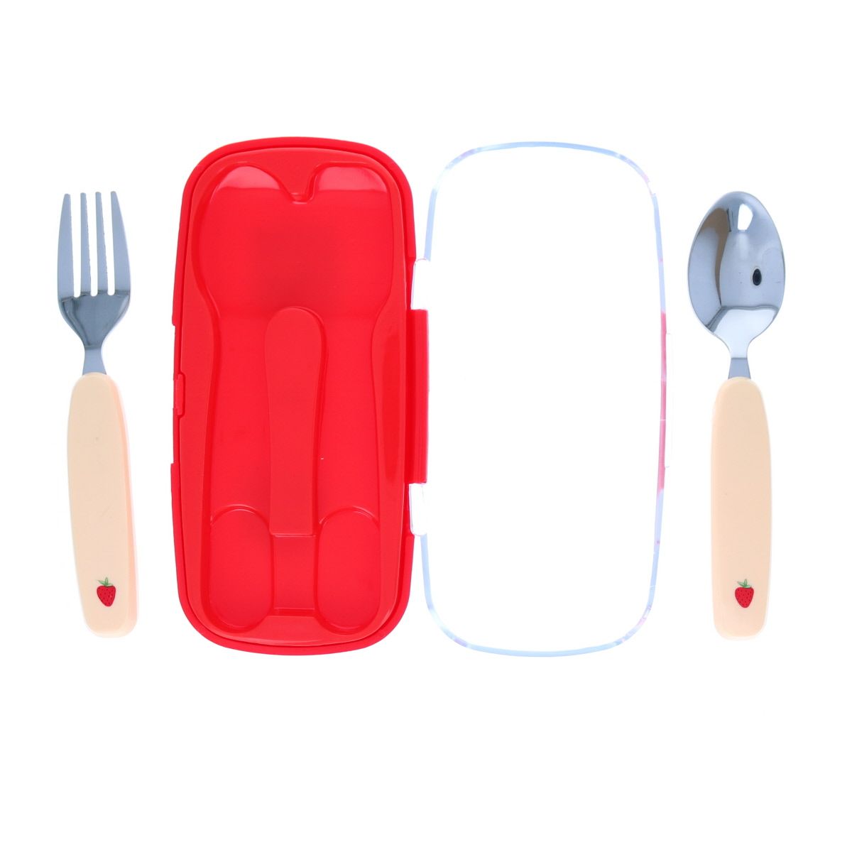 Un petit set de couvert fourchette et cuillère à imprimé fraise. En acier inoxydable et en plastique, ce set comprend une cuillère et une fourchette et se trouve à l’intérieur d’un petit étui de transport pratique, parfait pour les pique-niques et les voyages. Avec sa petite fraise dessinée, ce set va vous faire craquer.