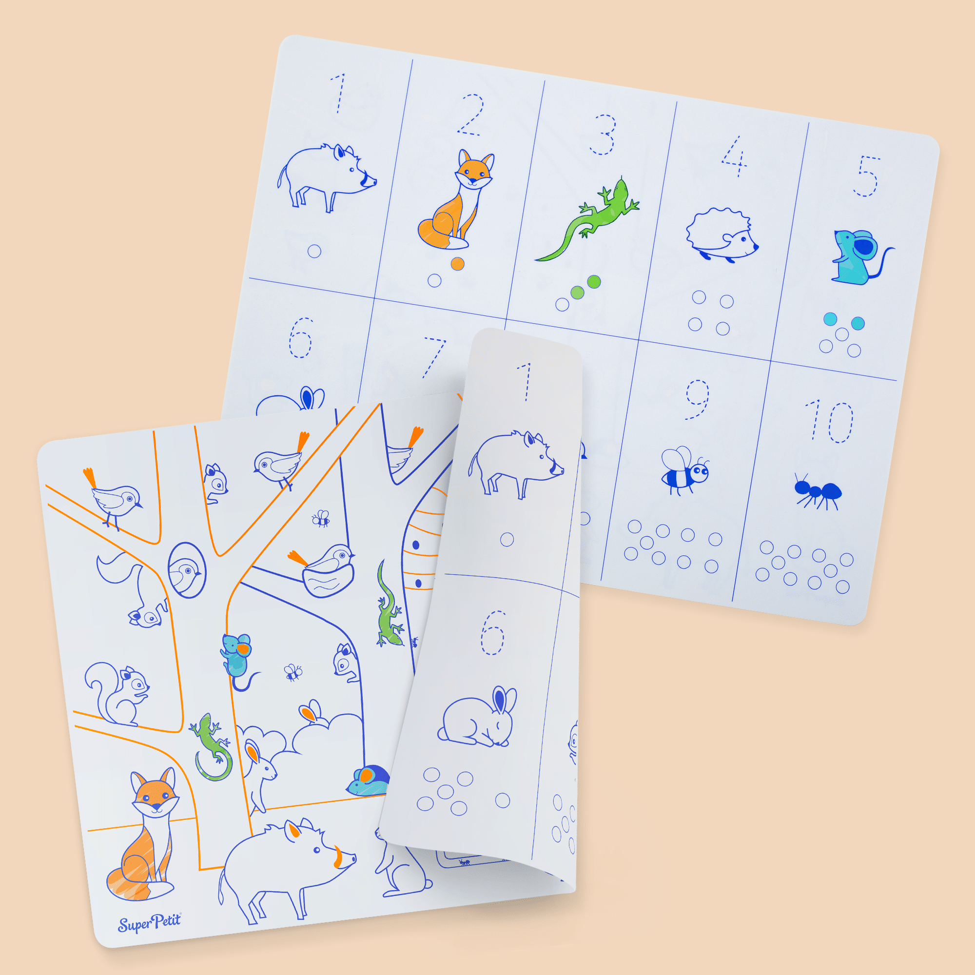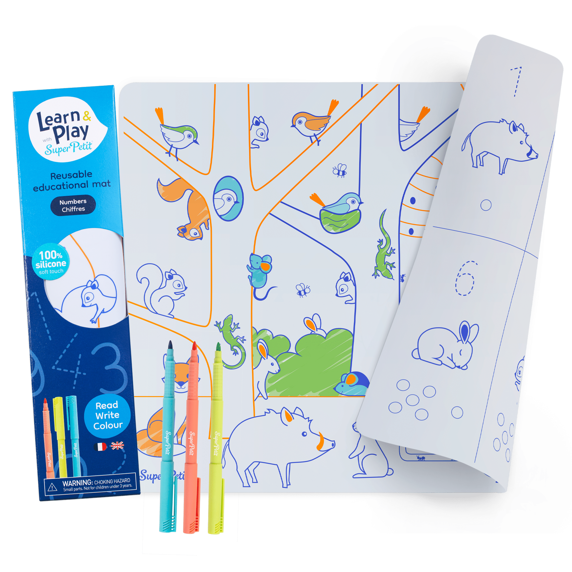 1 set silicone réversible : 1 côté pour colorier + 1 côté à remplir + 1 feutre inclus LEARN & PLAY : un set éducatif pour developper le langage et stimuler la mémoire. PEDAGOGIE POSITIVE se tromper, recommencer et réussir grâce à son support effaçable. REVERSIBLE ET CREATIF : un support malin et réversible à emporter partout pour s’amuser deux fois plus.