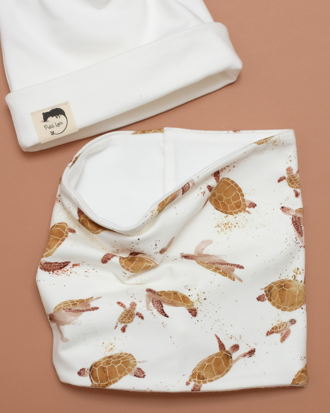 Tour de cou en molleton bio écru doux et chaud à doubler avec le tissu jersey ou molleton (léger ou chaud) de votre choix.