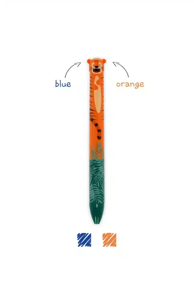 Découvrez le stylo à 2 couleurs modèle Tigre de chez Legami ! Une simple pression pour passer d’une couleur à une autre.
