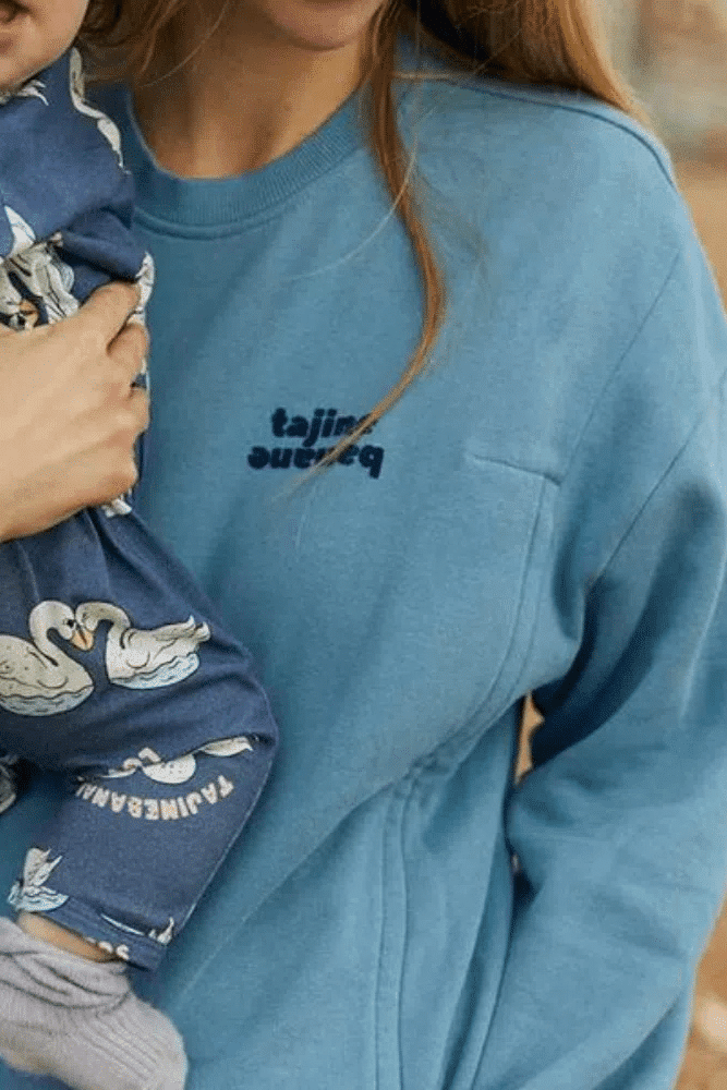 Le nouveau Sweat Tajine Banane adapté à l’allaitement et à la grossesse. Grâce à sa double ouverture par zips et sa bande de discrétion à l’intérieur, vous pourrez allaiter confortablement. En molleton très souple et tout doux ! Un joli flocage en velours TAJINE BANANE sur le coeur. Pour ce sweat d’allaitement adapté à la grossesse, un brin loose, nous vous conseillons de prendre votre taille habituelle.