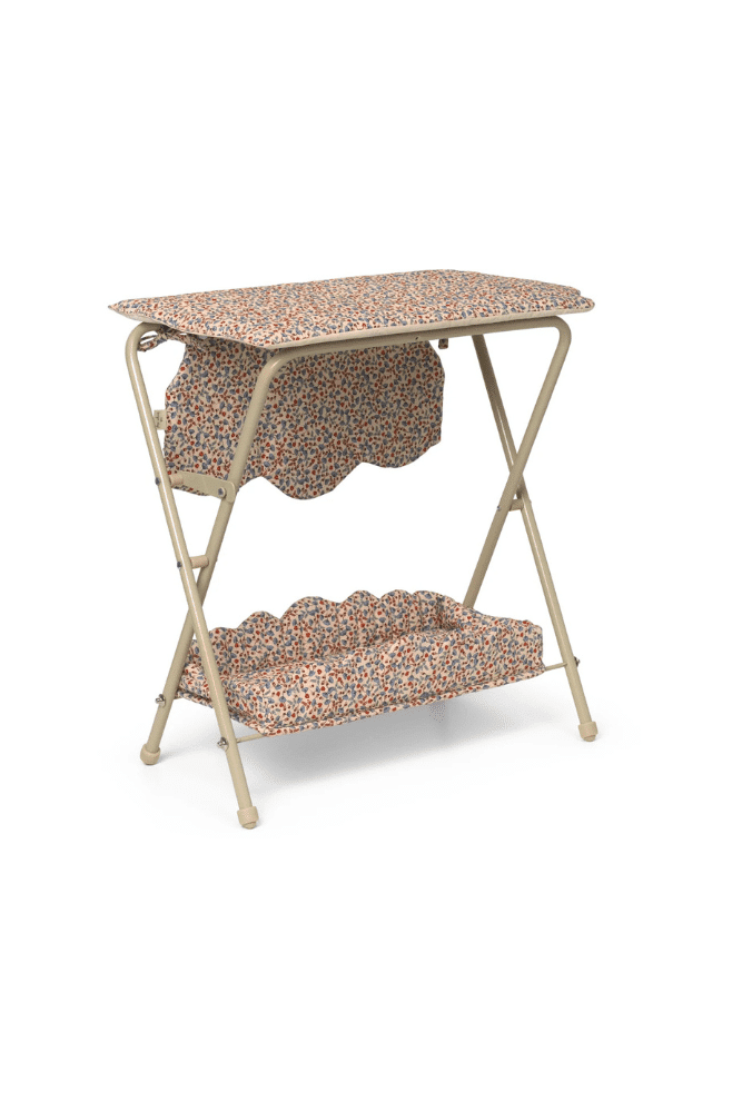 Pour faire comme les grands ! Avec son cadre en fer et ses espaces de change et de rangement en coton recyclé, la table à langer pour Poupée de Konges Sløjd aura tout d’une grande. Idéale pour que votre tout-petit s’amuse à imiter papa ou maman, cette table à langer dispose de nombreux espaces de rangement et d’une grande surface de change. Votre enfant pourra donc changer sa poupée confortablement et en ayant toutes ses affaires à proximité. Pratique, ce modèle se repliera facilement lorsqu’il ne servira pas.