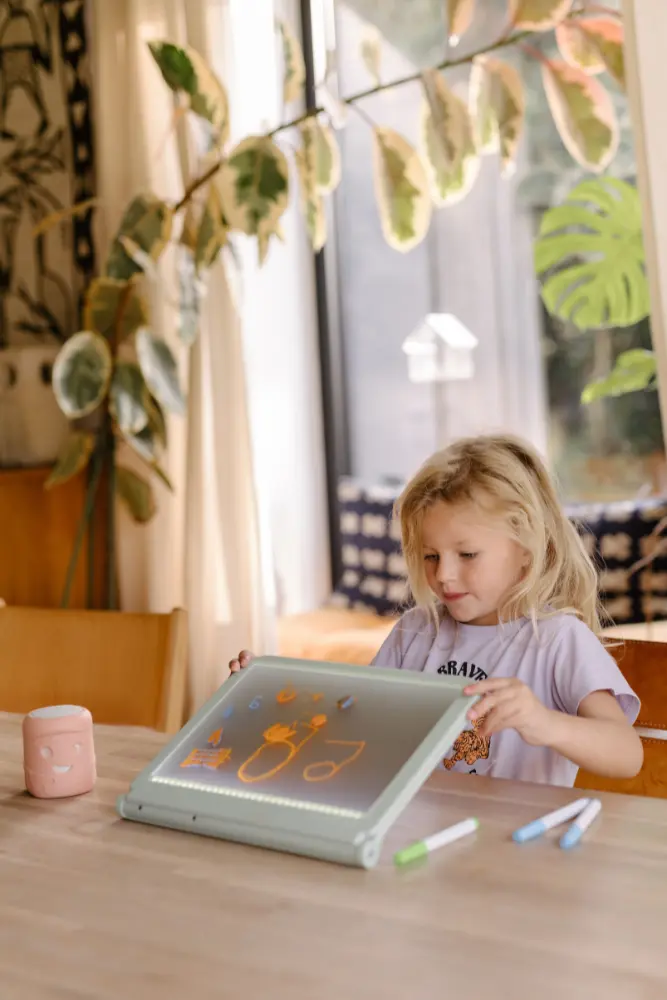 La KIDYDRAW PRO est bien plus qu’une simple tablette de dessin. Conçue pour accompagner les jeunes artistes, cette tablette lumineuse permet aux enfants de reproduire avec précision. De plus, la KIDYDRAW PRO est livrée avec un ensemble de marqueurs spécialement conçus pour offrir une expérience de dessin complète, permettant à votre enfant d’explorer et d’exprimer sa créativité sous différentes formes. Avec son format nomade, elle se glisse facilement dans un sac, prête à suivre les artistes en herbe dans toutes leurs aventures créatives.