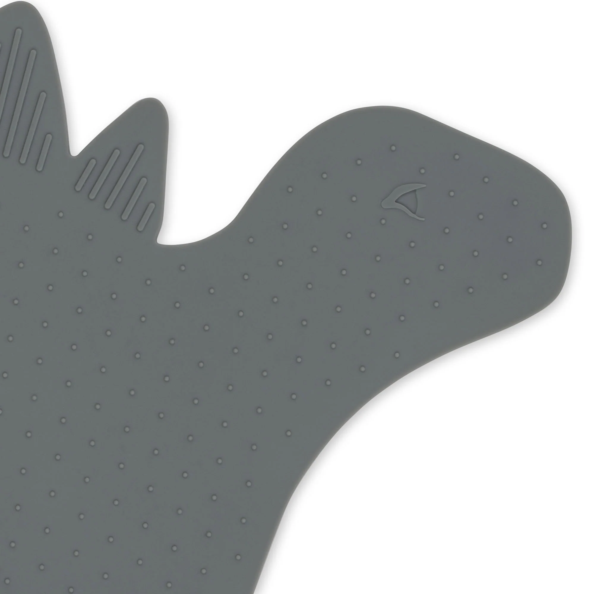 Tapis de bain antidérapant en forme de dinosaure fabriqué en silicone. Les ventouses puissantes adhèrent à la plupart des surfaces.