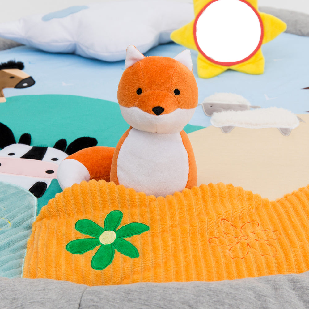 Découvrez notre tapis d’éveil Ferme pour bébé. Ce grand tapis d’activités contient plein de surprises à découvrir. Plongez dans l’univers de la ferme avec des motifs colorés et stimulants. Offrez à votre bébé un espace de jeu confortable pour développer ses sens.